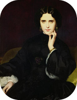 ou Marie-Anne Detourbay, devenue Jeanne de Tourbey, collectionneuse des amants fortunés, maîtresse de Khalil-Bey, le fameux diplomate de la Sublime-Porte et commanditaire de deux chefs-d’œuvre de Courbet, "Le Sommeil" et "L’Origine du monde", comtesse de Loynes, puis maîtresse en titre du critique littéraire Jules Lemaître et égérie de la Ligue de la patrie française en 1899, ici peinte par Amaury-Duval en 1862 : "je songe à vous presque continuellement, écrit Flaubert alors à Tunis pour l'écriture de Salammbô. Et je n'ai que cela à vous dire, pas autre chose ! Je le jure par vos beaux yeux et vos belles mains. […] Dans huit jours je repars et dans trois semaines je vous reverrai. C'est là l'important. — Avec quelle joie je me précipiterai vers votre maison et comme mon cœur battra en tirant votre sonnette ! — Quand je serai à vos pieds, sur votre tapis, nous causerons de mon voyage, si cela vous amuse. […] Si vous saviez comme je pense à votre appartement, qui vous contient, et jusqu'aux meubles qui vous entourent ! N'avez-vous pas depuis mon départ senti, quelquefois, comme un souffle qui passait sur vous. C'était quelque chose de moi, qui, s'échappant de mon cœur, traversait l'espace, invisiblement, et arrivait jusque là-bas ! J'ai vécu depuis cinq semaines avec ce souvenir (qui est un désir aussi). Votre image m'a tenu compagnie dans la solitude, incessamment. J'ai entendu votre voix à travers le bruit des flots et votre charmant visage voltige autour de moi, sur les haies de nopals, à l'ombre des palmiers et dans l'horizon des montagnes. Il me semble que j'ai emporté de votre chère personne une sorte d'émanation qui me pénètre, un parfum dont je suis embaumé, qui m'assoupit et qui m'enivre. Je vous en veux d'occuper tant de place dans ma pensée..." ( Gustave Flaubert, Correspondance, t. II, Paris, Gallimard (Pléiade), 1980, Lettre à Jeanne de Tourbey du 15 mai 1858).