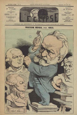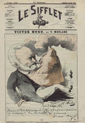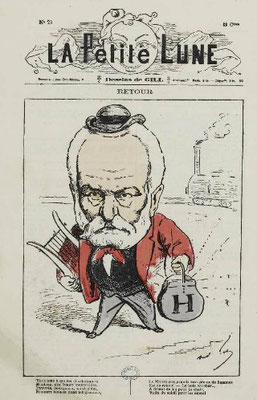 Victor Hugo - les années 1850-1860 - Le coup d'Etat du 2 décembre 1851, qui le remplit d'une juste indignation, ou plutôt d'une de ces fureurs vengeresses qu'on rencontre de loin en loin dans l'histoire littéraire, l'exila ; mais «désastre pour son ambition, ce fut un coup de fortune pour son génie» (Fernand Gregh). Il se fût peut-être usé dans la politique. « Il fut haussé tout à coup sur un piédestal, qui le grandissait même à ses propres yeux, cloué sur un rocher comme Prométhée, confiné dans une île comme Napoléon...». Après un séjour de quelques mois à Bruxelles, c'est en effet, à Jersey, puis à Guernesey, qu'il passa les dix-huit années d'un exil devenu volontaire après l'amnistie impériale de 1859; années qui nous valurent d'ailleurs une suite d'incomparables oeuvres : "les Châtiments" (1853), recueil lyrique, qu'avait précédé le pamphlet de "Napoléon le Petit"; "les Contemplations" (1856), autre recueil lyrique et le plus considérable, comme le plus émouvant, de tous ceux qu'avait donnés Victor Hugo ; la première partie de "la Légende des. siècles" (1859), recueil épique, sans égal dans notre littérature ; le vaste et merveilleux roman social "les Misérables" (1862) ; "William Shakespeare, étude littéraire" (1864) ; "les Chansons des rues des bois" (1865); et, encore, deux romans : "les Travailleurs de la mer" (1866) et "l'Homme qui rit" (1869).