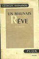 Oeuvre posthume de Georges Bernanos, achevé vers 1935, alors que l'écrivain. en proie à des difficulté financières, songeait à vivre grâce à des romans policiers écrits en dehors de son cycle littéraire. "Un mauvais rêve" commence comme roman policier mais devient très vite un roman où l`on pouvait retrouver les thèmes habituels de l`auteur : possession, imposture, vide effrayant de certaines âmes. Dans le principal personnage, M. Ganse, romancier sur le déclin dont la veine littéraire, qui lui avait servi jusqu`ici à se débarrasser de ses mauvais rêves, est sur le point d'être tarie. Bernanos a transposé ainsi ses soucis d`argent et surtout certains travers propres à l`homme de lettres, grossis à la taille de la fiction. Bernanos attachait en effet une grande importance à la mission de l`écrivain, c`est pourquoi M. Ganse est menacé d'une de ces irrémédiables chutes intérieures qui n`arrivent habituellement qu'aux mauvais prêtres. Esclave de sa célébrité et de sa légende, M. Ganse, lorsque sa plume cesse de le servir, est mis en face de sa réalité. c`est-à-dire de son néant.