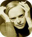 De son vrai nom Truman Streckfus Persons, Truman Capote est né à La Nouvelle-Orléans et a été élevé dans une plantation de l'Alabama, son père avocat épouse une Miss Alabama de seize ans qui enferme son fils dans un placard pour vivre sa vie : le mariage finit dans l'alcoolisme et la rupture. Truman prend le nom de son beau-père, vit avec des cousines, retrouve son père : il quitte définitivement à 17 ans le système scolaire et travaille de 1941 à 1945 comme pigiste au New Yorker. Il manifeste très tôt un grand don d'observation et une virtuosité littéraire dans ses premières nouvelles, rapidement remarquées par le milieu littéraire new-yorkais. Son premier roman "Les domaines hantés" (Other Voices, Other Rooms, 1948) remporte un vif succès mais la couverture de son livre qui le représente en starlette androgyne allongé langoureusement sur un sofa fait scandale. Truman Capote lance ainsi, en toute "innocence" selon lui, l'une des carrières littéraires américaines les plus flamboyantes, avant de sombrer dans l'alcoolisme et la cocaïne à la fin des années soixante. "Other Voices, Other Rooms" raconte la rencontre du jeune Joel Knox, à la recherche de son père, et d'un vieil homme muet et infirme qui ne communique qu'en lançant des balles de tennis rouges dans l'escalier. En 1949, il publie un recueil de contes, "L'arbre de nuit" (The Grass Harp). Suivent "Local color", en 1950, "La harpe d'herbes" en 1951, "Les muses parlent" en 1956. Sa créativité littéraire s'achève avec "Breakfast at Tiffany's" (1958) et "In Cold Blood" (1966), deux énormes succès et le début de sa lente descente aux enfers...