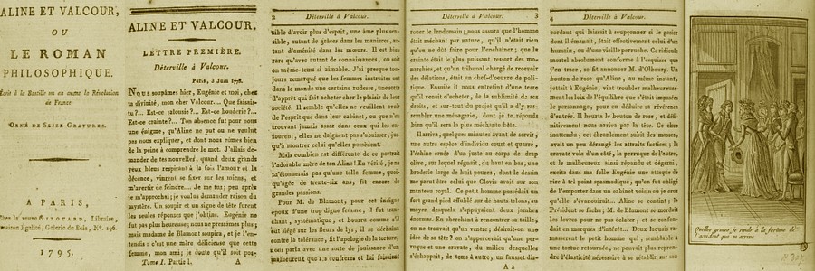 Donatien Alphonse François de Sade (1740-1814), "Les Cent Vingt Journées de Sodome" ou "l'Ecole du libertinage" (1785), "Justine ou les Malheurs de la vertu" (1791-1797), "La Philosophie dans le boudoir" (1795), "Aline et Valcour" (1795), "Juliette ou les Prospérités du vice" (1797)- ...