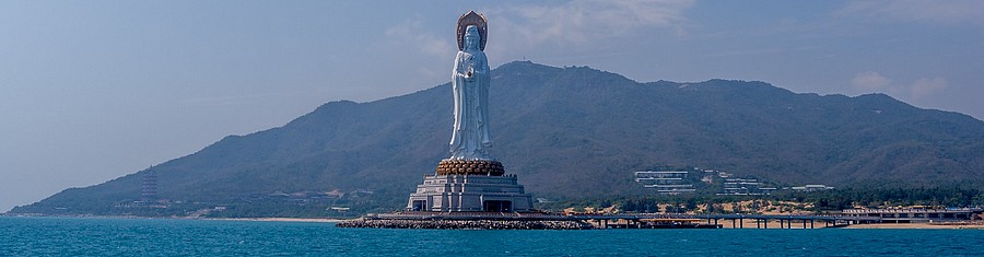 Le "Bodhisattva Guanyin de Hainan Sanya", situé dans la zone de tourisme culturel de Nanshan à Sanya, sur la côte sud de l'île de Hainan, est l'un des sites bouddhistes les plus importants au monde et l'une des principales attractions touristiques de Hainan. La statue mesure 108 mètres de haut, ce qui en fait l'une des plus hautes statues de Guanyin au monde. Elle présente un design unique à trois faces, chaque face représentant Guanyin sous une forme différente, l'une des faces est tournée vers l'intérieur des terres, bénissant la terre et ses habitants et les deux autres sont tournées vers la mer de Chine méridionale, symbolisant la protection et l'orientation des marins et des voyageurs. Les trois formes représentent la compassion, la sagesse et la paix de Guanyin (Guanyin, également connue sous le nom d'Avalokiteshvara, est en effet un bodhisattva vénéré dans le bouddhisme Mahayana, incarnant la compassion et la miséricorde).