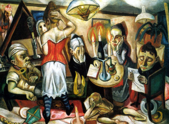 "Portrait of Frau Tube" (1919, Kunsthalle Mannheim) - "Self-Portrait with Champagne Glass" (1919, Private collection) - "The Synagog in Frankfurt am Main" (1919) - "Carnival" (1920, Tate, London) - "Portrait of Fridel Battenberg" (1920, Sprengel Museum) - "The Dream" (1921, Saint Louis Art Museum) - "Before the Masked Ball" (1922, Bayerische Staatsgemäldesammlungen - Munich) - "Portrait of Frau Dr. Heidel" (1922, Hamburger Kunsthalle) - "Dance in Baden-Baden" (1923, Bayerische Staatsgemäldesammlungen, Munich) - "Double Portrait of Frau Swarzenski and Carola Netter" (1923, Städelsche Kunstinstitut und Städtische Galerie, Frankfurt) - "Self-Portrait with Cigarette on Yellow Background" (1923, Museum of Modern Art, New York) - "Portrait of Elsbeth Goetz" (1924, Lubecker Museen) - "Carnival Double-Portrait, Max Meckmann and Quappi" (1925, Museum Kunstpalast, Düsseldorf) - "Portrait of Quappi in Blue" (1926, Bayerische Staatsgemäldesammlungen, Munich) - "Self-Portrait in a Tuxedo" (1927, Busch-Reisinger Museum) - ...
