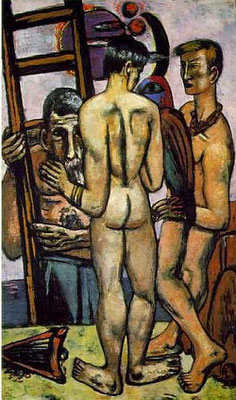 Natif de Leipzig, Max Beckmann perd successivement son père en 1894 puis sa mère en 1906, passe son enfance en pension et son premier autoportrait dessiné à l'âge de quinze ans est connu pour son don impitoyable d'autoanalyse qui ne le quittera plus. Il termine sa formation à l'école des Beaux-arts de Weimar et passe six mois à Paris en 1903 où il acquiert une touche impressionniste. Sa peinture à l'huile "Junge Männer am Meer" (1905), réalisées à Paris dans un style très néoclassique (on songe à Hans von Marées), est considérée comme son premier chef d'oeuvre. Après son séjour à Paris et son voyage en Italie, Beckmann s'installe à Schöneberg près de Berlin...