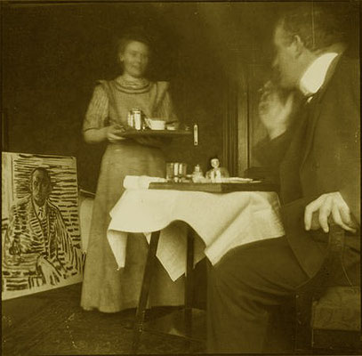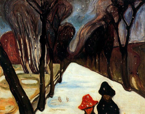 En 1902, Munch s'installe dans une maison jaune à Asgårdstrand, petit village près de Horten, sur les rives du fjord d'Oslo, et partage son existence avec une dame de la bonne société, Tulla (Mathilde) Larsen, "vieille fille" de trente ans (Munch en en trente-quatre) dont la passion envahit Munch et semble contrarier toute la force vitale qu'il entend utiliser pour poursuivre son oeuvre : dans la nuit du 11 au 12 septembre 1902, c'est la scène de dispute bien connue au cours de laquelle Munch se retrouve blessé d'un coup de revolver à la main gauche, et cesse à partir de là toute relation avec sa maîtresse. La Norvège lui pèse et c'est vers l'Allemagne qu'il se tourne alors. En 1908, atteint de psychose, Munch est soigné dans une clinique de Copenhague ("Self-portrait at Dr Jacobson Hospital", 1909, Rasmus Meyer Collection, Bergen, Norway; "Professor Daniel Jacobson", Munch Museum, Oslo, Norway) et c'est progressivement qu'il refait le chemin vers Kristiania et ses habitants. Il acquiert en 1916 en 1916 la propriété d'Ekely à Skøyen, à l'ouest de Kristiania et y résidera jusqu'à la fin de sa vie. Durant l'hiver 1943-1944, il contracte une pneumonie et meurt le 23 Janvier 1944....