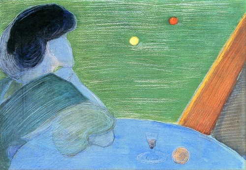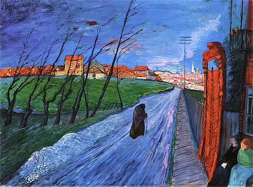 Peu de femmes parmi les peintres expressionnistes, Marianne von Werefkin est l'une d'entre elles, son "Autoportrait" nous révèle une femme décidée et d'autant plus ouverte sur le monde qu'elle défendit une conception de l'art relativement rare, "un sentiment concentré d'amour élevé à une vision du monde et traduit dans un langage artistique de symboles..". Nous ne sommes pas loin de cette abstraction lyrique sur laquelle s'engagera Kandinsky. Issue d'une famille de l'aristocratie russe, Marianne von Werefkin est née le 29 août 1860 près de Moscou, dans le palais du gouverneur de Toula. Sa mère était peintre d'icônes, son père, baron comptant parmi les favoris du tsar, et son enfance se déroula dans une riche propriété de la région de Kovno (Portrait of A Girl in Russian Costume, 1883-88). Mais en 1888, sa main droite est déchirée par une balle et reste estropiée, c'est à force de volonté qu'elle s'emploie à nouveau à manier pinceaux et crayons. En 1889, lorsque ses parents déménageant à Saint-Pétersbourg, elle devient l'une des élèves d'Ilya Répine, l'un des peintres les plus importants du «réalisme» russe, puis en 1891, rencontre Alexéi Jawlensky, alors âgé de vingt-sept ans, et c'est avec lui qu'elle quittera en 1896 la Russie pour Munich. Elle va sacrifier une dizaine d'années à son compagnon ("je peux tout comprendre mais je ne peux pas créer"), lui servant d'intermédiaire et soutenant un salon artistique informel, salon qui accueillera Wassily Kandinsky sur lequel elle ne sera pas sans influence : c'est elle qui lui fera connaître les enseignements de l'anthroposophe Rudolf Steiner qui l'engageront vers l'abstraction...
