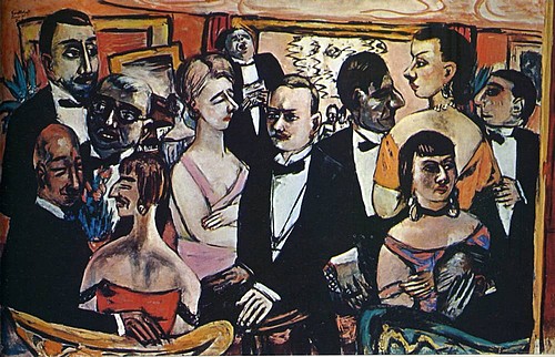 C'est l'expression de la souffrance qui s'impose, hante les paysages citadins d'un Berlin alors livré au combat de rues depuis la Révolution de novembre 1918. Sa grande peinture, son premier grand chef d'oeuvre, "Die Nacht" (La Nuit, Düsseldorf, Kunstsammling Nordrhein-Westfalen), datée précisément d'août 1918 à mars 1919, retranscrit la grève générale de ce mois de mars qui est enrayée dans le sang, l'horreur de la rue pénètre dans la sphère privée d'un appartement et d'une famille, trois personnages torturent un couple et enlèvent leur fille, la représentation de la scène vole en éclats sous la violence des gestes des bourreaux. Beckmann évoque ici la violence sociale qui déchire la société allemande, Beckmann, incompris, entendait bien "donner à l'homme une image de sa destinée.."