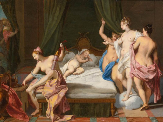 "Apelles Painting Campaspe" (1716, Musée du Louvre), "Venus and the Three Graces Tending Cupid" (1725) - Peintre français d’origine flamande, ami proche de Watteau très influencé comme lui par Rubens, Vleughels s’est rendu en Italie en 1704, à Rome, à Venise (1707-09) et à Modène (1712-14) pour y copier les oeuvres des coloristes vénitiens et de Véronèse. De 1724 jusqu’à sa mort, il a été directeur de l’Académie française à Rome.