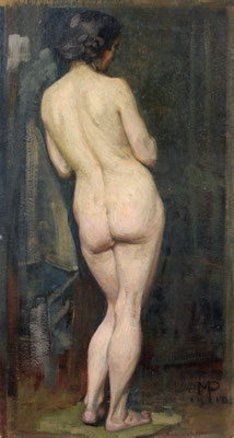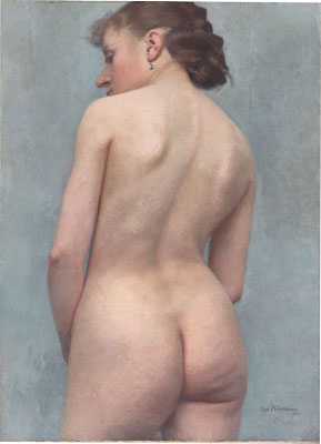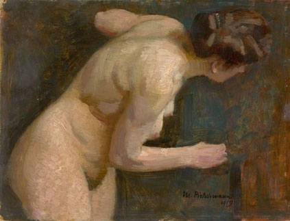 Les nus de Max Pietschmann (1865-1952), - peintre allemand souvent associé au symbolisme et à l'Art Nouveau (Jugendstil), bien que son style soit éclectique et personnel -, baignent souvent dans une atmosphère onirique, voire mélancolique, empreints d'une sensualité subtile et contemplative, suggérée par les poses, les expressions rêveuses et l'utilisation de la lumière. Il était un virtuose de la technique du glacis (superposition de fines couches de peinture transparente), héritée des maîtres anciens. Cela donne à ses chairs une translucidité, une douceur et une profondeur lumineuse caractéristiques. La lumière semble souvent émaner des corps eux-mêmes ou les envelopper délicatement. Les œuvres de Max Pietschmann (y compris ses nus) sont principalement conservées dans des musées allemands, surtout en Saxe (région dont il était originaire) : la Galerie Neue Meister à Dresde et le Museum Gunzenhauser à Chemnitz ...