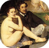 Les oeuvres de Manet font de lui le chef de file des artistes d'avant-garde qui donneront naissance à l'impressionnisme et au réalisme. Non seulement Manet traite essentiellement de la vie quotidienne mais il entend travailler l'apparence de la peinture elle-même. "Olympia" (1863) s'inspire de la Vénus d'Urbino de Titien, mais ce n'est pas une déesse que Manet représente, c'est une courtisane en toute intimité. L'absence de perspective accroît la proximité d'Olympia, qui semble offerte au regard du spectateur. Quant au "Déjeuner sur l'herbe" (1862-1863), on sait combien il fit scandale : la juxtaposition très réaliste de femmes nues et d'hommes élégamment vêtus choquera le public du XIXe siècle. Au premier plan, la femme semble totalement indifférente à sa propre nudité et défie du regard l'observateur. Quant aux hommes, le frère et le beau-frère du peintre, absorbés dans leur conversation, ils ne semblent prêter aucune attention à la nudité de leur voisine, Victorine Meurent. Celle-ci est entrée dans l'univers de Manet à 18 ans et assume sans complexe sa condition de courtisane devant le public du Second Empire. Manet continuera de peindre Victorine (Le Chemin de fer, 1872), mais les nus se feront très rares...