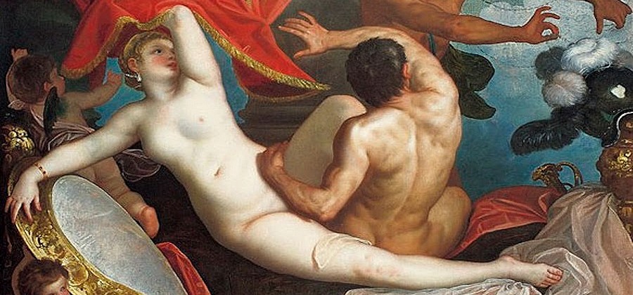 ... "Mars and Venus Surprised by Vulcan" (1601, Mauritshuis, The Hague) - "The Judgement of Paris" (Fitzwilliam Museum, Cambridge) - "Mars and Venus Surprised by Vulcan” (1604-1608, The J. Paul Getty Museum, Los Angeles) - "Mars and Venus Surprised by Vulcan” (1610, Rijksmuseum, Amsterdam, Collectie Broere Foundation), une scène des «métamorphoses» d’Ovide dans laquelle les amants divins Mars et Vénus sont pris en flagrant délit par le mari de Vénus alors que le reste de l’Olympe regarde, des ébats amoureux suffisamment explicites pour avoir soigneusement conservées hors de la vue du public pendant des siècles ...