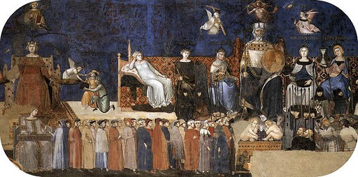 (Ambrogio Lorenzetti, Frescoes of the Good and Bad Government, between 1338 and 1340, Sala dei Nove, Palazzo Pubblico, Siena....)